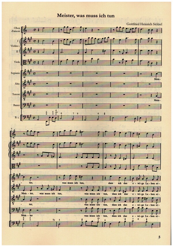 | Untertitel: | für Soli (STB), gem Chor, Oboe d'amore, 2 Violinen, Viola und Bc Partitur |