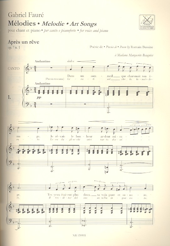 Après un reve Les berceaux Au bord de l'eau Automne Les roses d'Ispahan Nell Ici-bas Notre amour Prison Rencontre Toujours Adieu Le secret Mandoline Clair de lune Fleur jetée Chanson d'amour La fée aux chansons Les présents Nocturne