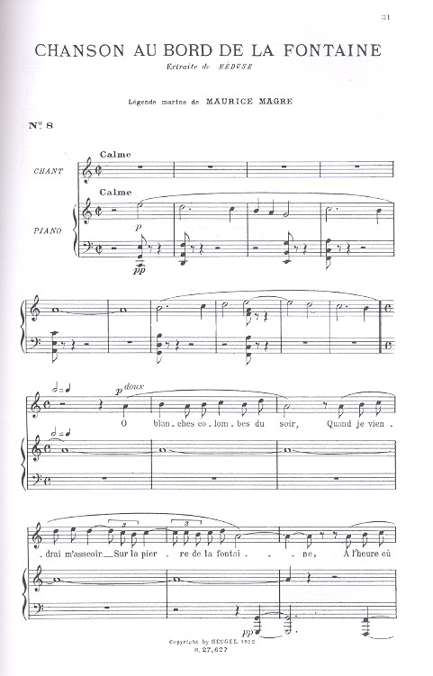 Quand la nuit n'est pas etoilee Cantique sur le bonheur des justes et sur le Malheur des reprouves La delaissee La chere blessure Theonie Le souvenir d'avoir chante Quand je fus pris au pavillon Chanson au bord de la fonaine (extrait de Méduse) Sur l'eau Fumee Le printemps Dans la nuit Les fontaines À chloris Le rossignol des lilas À nos morts ignores Ma jeunesse Le plus beau present Puisque j'ai mis ma levre La douce paix