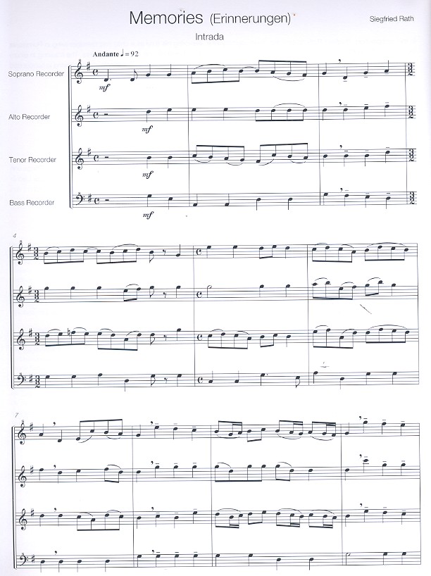 Produktinformationen "Memories für 4 Blockflöten (SATB)"