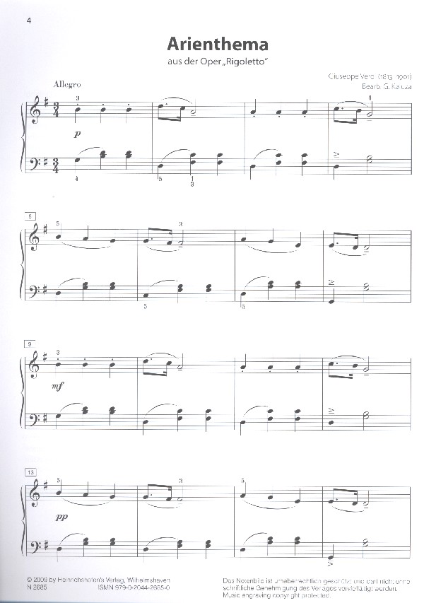 Kaluza, Günter ed Reihe Beflügelt Arienthema aus der Oper 'Rigoletto' (Giuseppe Verdi) Guten Abend, gut' Nacht (Johannes Brahms) Faszination (Filippo D. Marchetti) Donauwellen (Josif Ivanovici) Über den Wellen (Juventino Rosas) Der Schwan - Thema aus 'Karneval der Tiere' (Camille Saint-Saens) Arie des Papageno aus dem Singspiel 'Die Zauberflöte (W. A. Mozart) Hochzeitsmarsch - Thema zu Shakespeares 'Ein Sommernachtstraum' (Felix Mendelssohn Bartholdy) Largo - Thema aus der Oper 'Xerxes' (G. Fr. Händel) Romanze - Thema aus dem Klavierkonzert Nr. 20 d-Moll, KV 466, 2. Satz (W. A. Mozart) Wiener Blut - Walzer-Thema (Johann Strauss) Aria 'Bist du bei mir' nach G. H. Stölzel, BWV 508 (J. S. Bach) Jägerchor aus der Oper 'Der Freischütz' (Carl Maria von Weber) Radetzky-Marsch (Johann Strauss) Gladiatoren-Thema aus der Oper 'Carmen' (George Bizet) Triumpfmarsch - Thema aus der Oper 'Aida' (Giuseppe Verdi) Largamente aus 'Pomp and Circumstance' March No 1 (Land of Hope and Glory) (Edward Elgar) Menuet und Trio aus dem Streichquartett in E-Dur, op. 13 (Luigi Boccherini) Menuet aus der 'Wassermusik' (G. Fr. Händel) Stars and Stripes (John Philip de Sousa) Hochzeitsmarsch - Thema aus der Oper 'Lohengrin' (Richard Wagner) Rule Britannia aus dem Singspiel 'The Masque of Alfred' (Thomas Augustin Arne) Air aus der 'Suite Nr. 3' (J. S. Bach) Marsch der Priester aus dem Singspiel 'Die Zauberflöte' (W. A. Mozart) Badinerie aus der h-Moll-Suite (J. S. Bach) Prélude aus 'Te Deum' (Marc-Antoine Charpentier) Maple Leaf Rag (Scott Joplin) Coeli enarrant (Die Himmel erzählen) aus dem Oratorium 'Die Schöpfung' (Joseph Haydn) Hornpipe aus der 'Wassermusik' (G. Fr. Händel)
