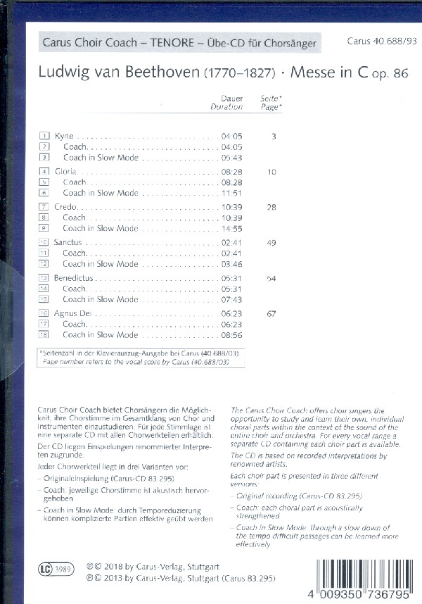 Carus choir coach Originaleinspielung Coach mit klavierbegleitung (und originaleinspielung im hintergrund) Coach in slow mode (temporeduzierung)