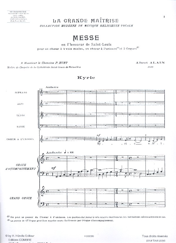 | Untertitel: | pour 4 voix mixtes, choeur à l'unisson et 2 orgues partition (la) |