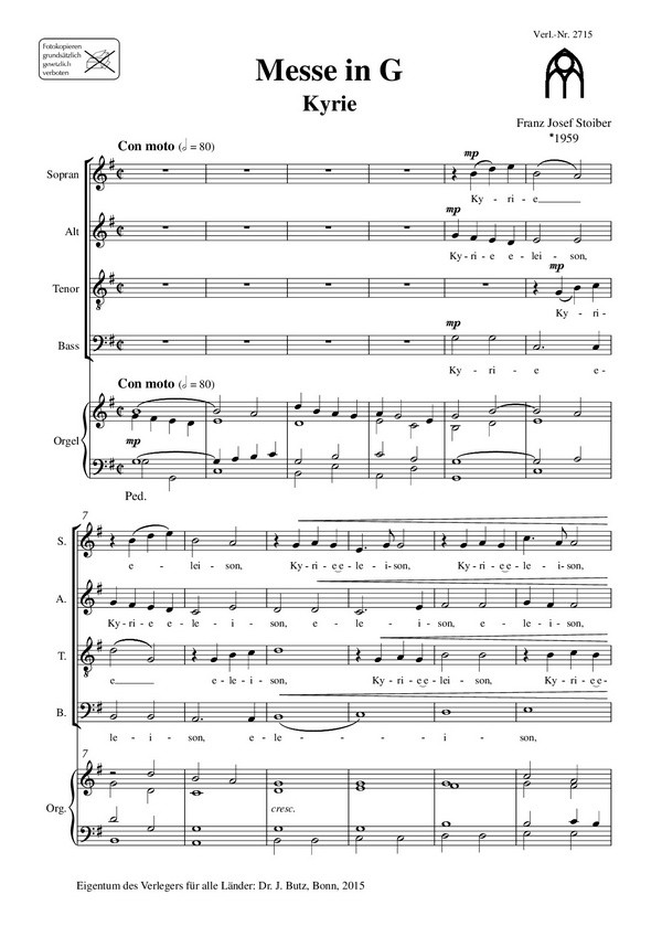 | Untertitel: | für gem Chor und Orgel Partitur |