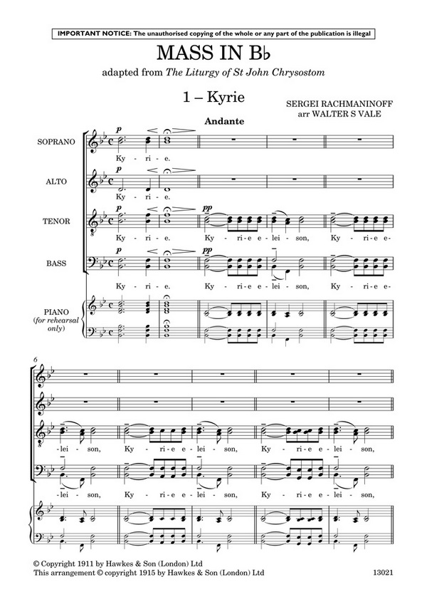 Choral Treasury Vale, Walter S., arr. from The Liturgy of St. John Chrysostom