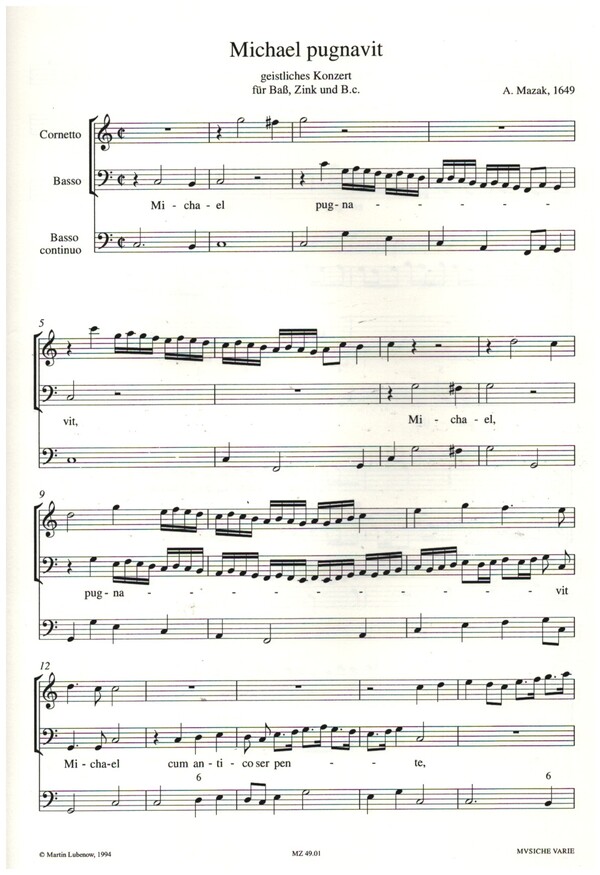 | Untertitel: | für Bass, Zink und Bc Partitur und Stimmen |