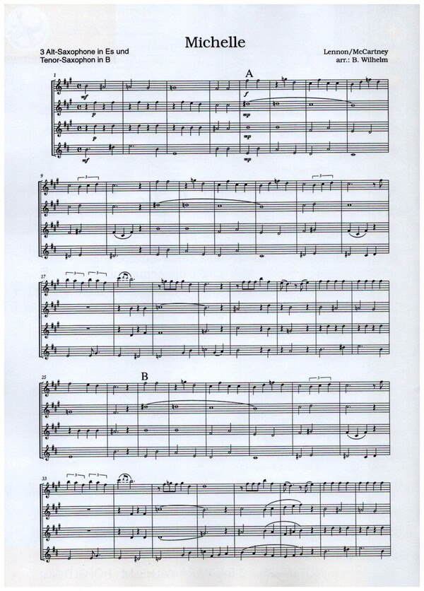 | Untertitel: | für 4 Saxophone (AAAT) Partitur und Stimmen |