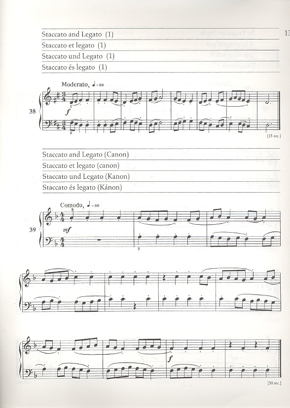 fortschreitende Klavierstücke In lydischer Tonart Staccato und Legato Staccato und Legato (Kanon) Jugoslawisch Melodie mit Begleitung Begleitung mit gebrochenen Kreikängen Ungarisch Gegenbewegung Méditation Zunehmen-verringern Jahrmarkt In mixolydischer Tonart Crescendo-Diminuendo Minuetto Wellenbewegung Einstimmigkeit mit Handwechsel Siebenbürgisch Chromatik Triolen in lydischer Tonart Melodie in Dezimen Akzente Im Orient Dur und Moll Kanon mit gehaltenen Noten Petatonische Melodie Kleine Sexten in Parallelbewegung Summen und Surren Linie gegen Punkt Dialog Geteilte Melodie Anhang: Übungen Anmerkungen