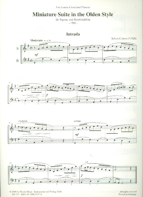 | Untertitel: | für sopran- und Bassblockflöte Spielpartitur |