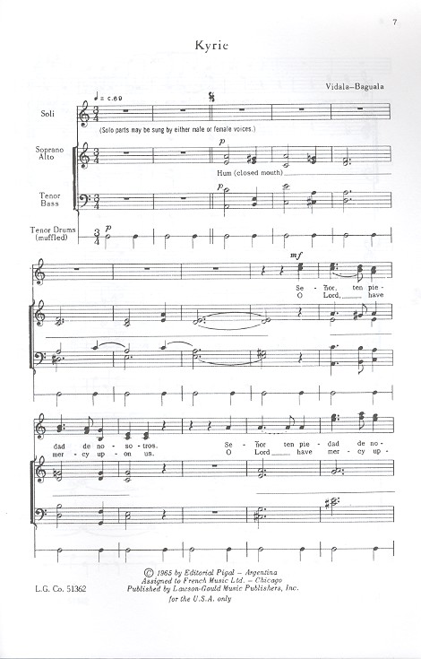 Missa Criolla Catena, A., Text Mayol, G. Text Segade, G., Text Dobbs, Louise, Text (sp/en) Segade, Jesus, Gabriel, Padre, ed Instrumentalstimmen nicht einzeln erhältlich! Dieser Klavierauszug darf einzeln verkauft werden. Orchestration: Harpschd or pno, Gtr, Str Bass, Perc(3 players): 2 tnr drums (Bombo Argentino) 2 tom-toms (tumbadoras), Triangle (Triangulos), Jingles (cascabeles), Small Gong, Temple Wdblcks (cocos), Snr Drum with Brushes (Tambor).
