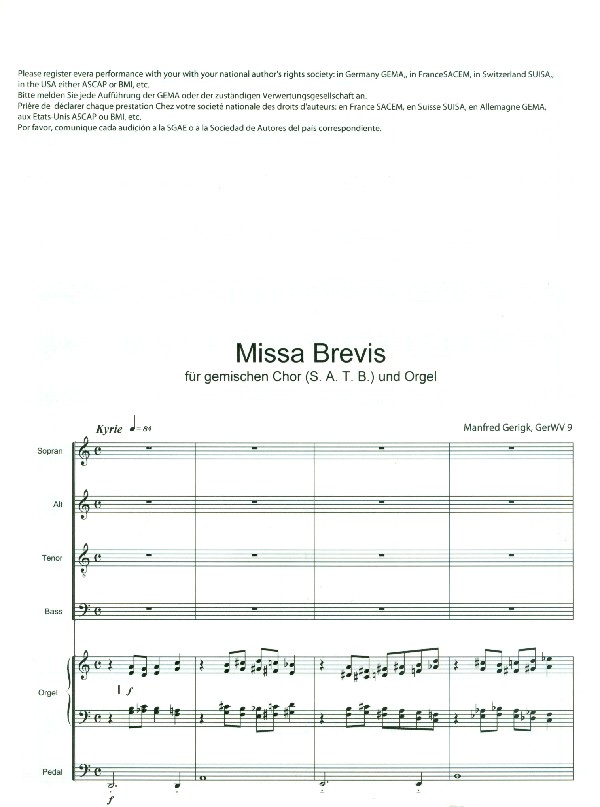 Missa Brevis GerWV9 für gem Chor und Orgel