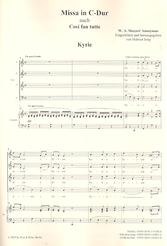 Missa C-Dur nach Cosi fan tutte von Mozart