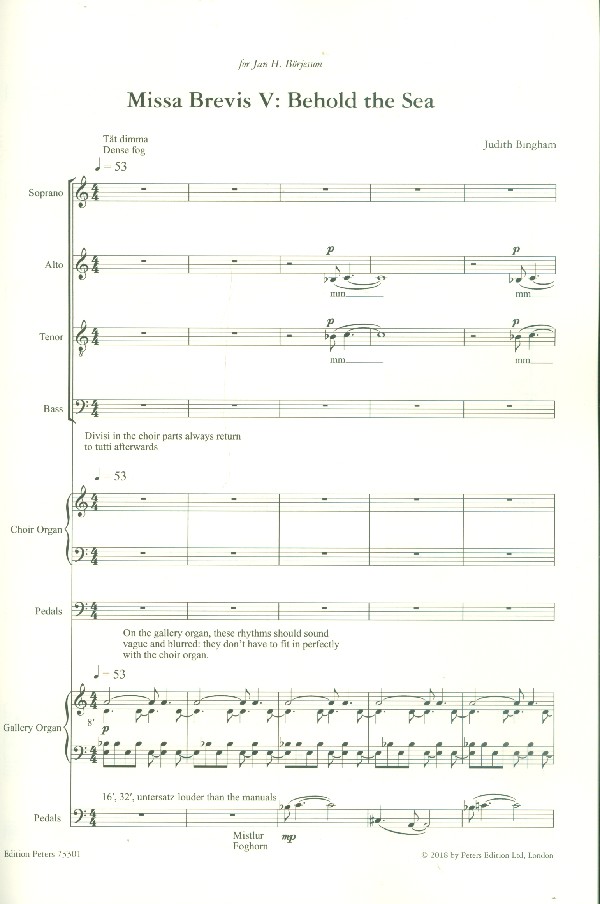 | Untertitel: | for mixed chorus, choir organ and gallery organ Score |