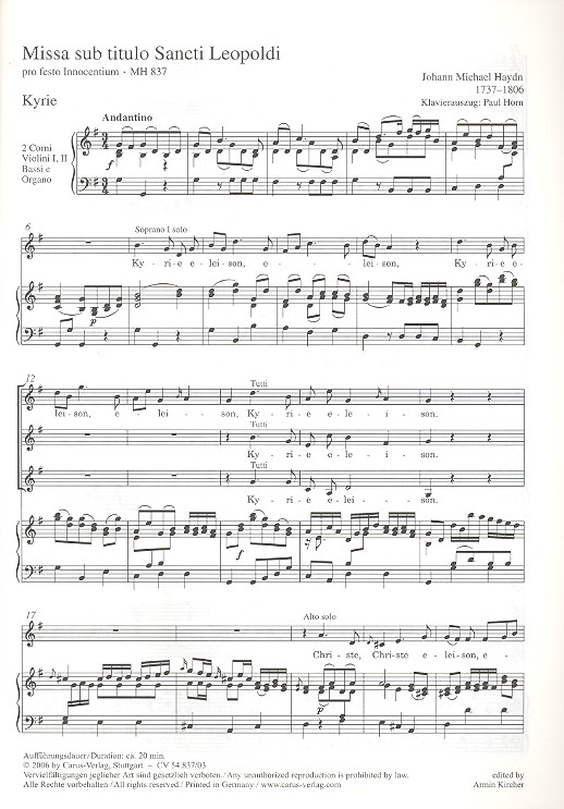 Produktinformationen "Missa sub Titulo Sancti Leopoldi MH837"