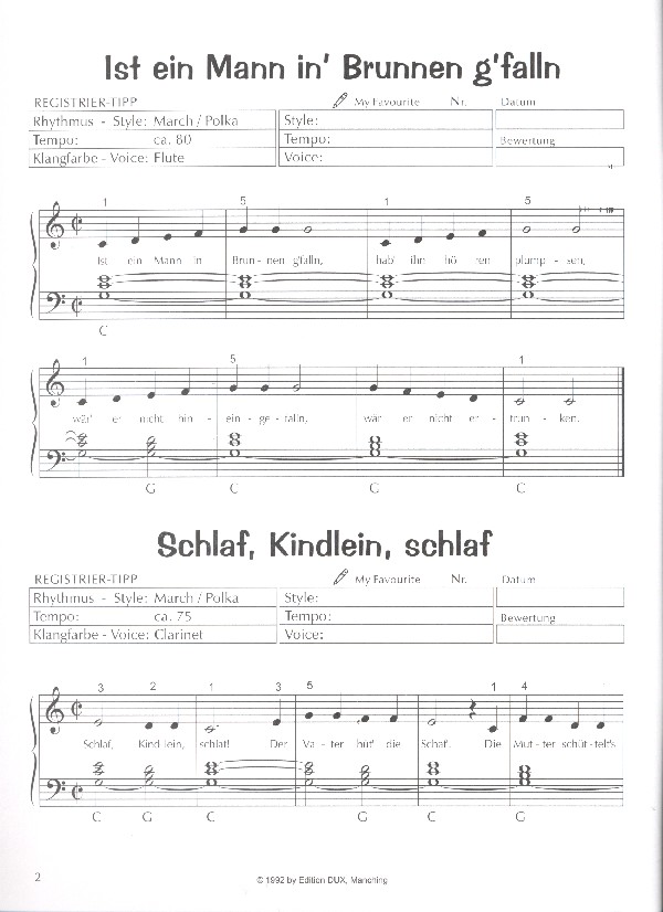 a b c die katze lief im schnee auf uns 'rer wiese gehet was backe backe kuchen bettelmanns hochzeit der kuckuck und der esel dornroeschen war ein schoenes kind ein maennlein steht im walde ein vogel wollte hochzeit machen es ist ein mann in brunnen gefallen es tanzt ein bi-ba-butzenmann fuchs, du hast die gans gestohlen gruen sind alle meine kleider haensel und gretel haeschen in der grube heile, heile segen hopp, hopp, pferdchen lauf galopp ich geh mit meiner laterne in einem kleinen apfel laterner laterne muede bin ich geh zur ruh