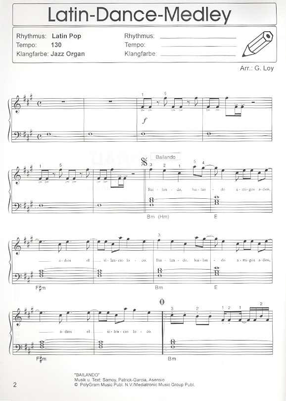 Loy, Günter, arr. Bailando Carveval de Paris Cielito lindo Samba de Janeiro We can leave the World I believe I can fly Angels When the Rain begins to fall Everybody As long as you love me Get down I want it that Way Happy People La cucaracha Mexican Hat Dance Tic tic tac La bamba