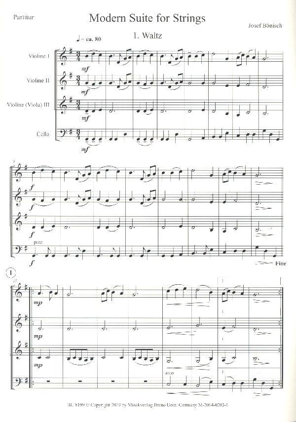 | Untertitel: | für Streichquartett (3 Violinen und Violoncello) Partitur und Stimmen |