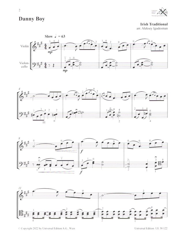 10 Duets Text in dt/fr/en In seiner neuen Ausgabe geht Aleksey Igudesman weit darüber hinaus, was sein voriges Violin & Cello & More zu bieten hatte. Im ersten Heft waren die Stücke für Anfänger und Fortgeschrittene gedacht, um Spaß zu haben und gefordert zu werden. Aber hier gibt es keine Zurückhaltung mehr! In 'Danny Boy' wird der Cellist mit Doppelgriffen im Tenorschlüssel konfrontiert, und in 'Pizzicato' stehen beide Spieler einem teuflisch schnellen sempre pizzicato gegenüber. Die Ausgabe führt durch viele Stile, mit Alekseys Neuinterpretationen berühmter Stücke von Mozart und Beethoven, hin zu einem unverschämt virtuosen Schluss namens 'Double Trouble'. Selbst Aleksey sagt, dass es nicht gerade einfach zu spielen ist. Seien Sie gewarnt! Ein wunderbarer Spaß und sehr anspruchsvolle Stücke, ideal für Konzertzugaben. Trad. Irish: Danny Boy · Igudesman Aleksey: Pizzicato Waltz · Mozart/Igudesman: Twinkle, Twinkle You Big Star · Mozart/Igudesman: Loud Date and Domino · Traditional: Klezmer's Freilach · Igudesman Aleksey: Salsa de la luna · Traditional: My Bonnie Flies Over the Ocean · Igudesman Aleksey: In the Moonlight · Igudesman Aleksey: For a Lease · Igudesman Aleksey: Double Trouble