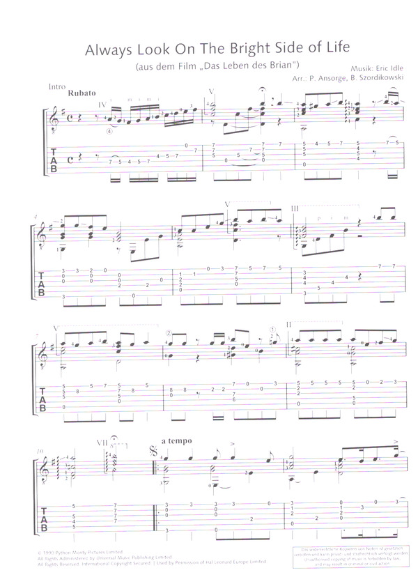 Die Ausgabe bietet eine abwechslungsreiche Mischung aus großen Filmmelodien von Blockbustern wie Inception oder Interstellar und berührenden Movie-Songs wie etwa Hallelujah aus Shrek und berührende Instrumentalstücke wie River Flows in You (Twilight) und Comptine d'un autre éte (Die wunderbare Welt der Amelie). Diese Sammlung erweitert so das Repertoire der klassischen Gitarre um viele gut klingende Stücke in Notenschrift und Tabulatur. Die beiden erfahrenen Pädagogen haben neben den Rock-, Pop-Hits und den Folk-Hits nun ein weiteres attraktives Songbook für den modernen Einzel- und Gruppenunterricht an Musikschulen entwickelt - Akkordsymbole ermöglichen die Begleitung durch einen zweiten Gitarristen. Always Look On The Bright Side Of Life (aus dem Film Das Leben des Brian) Time (Finales Thema aus dem Film Inception) Stay (Main Theme aus dem Film Interstellar) The Bare Necessities (aus dem Film Das Dschungelbuch) Una Mattina (aus dem Film Ziemlich beste Freunde) Mrs. Robinson (aus dem Film Die Reifeprüfung) Can You Feel The Love Tonight (aus dem Film Der König der Löwen) Hallelujah (aus dem Film Shrek) I See Fire (aus dem Film Der Hobbit Smaugs Einöde) The Pink Panther Theme (aus dem Film Der rosarote Panther) In Dreams (aus dem Film Der Herr der Ringe Die Gefährten) Manhâ do Carnaval (aus dem Film Orfeu Negro) Harry Lime Theme (aus dem Film Der dritte Mann) Comptine dun autre été Laprès-midi (aus dem Film Die fabelhafte Welt der Amelie) Feather Theme (Main Theme aus dem Film Forrest Gump) Cavatina (aus dem Film Die durch die Hölle gehen) Moon River (aus dem Film Frühstück bei Tiffany) Prelude BWV 1007 (aus dem Film Der Pianist) Summertime (aus dem Film Porgy und Bess) We Are The Champions (aus dem Film Bohemian Rhapsody)