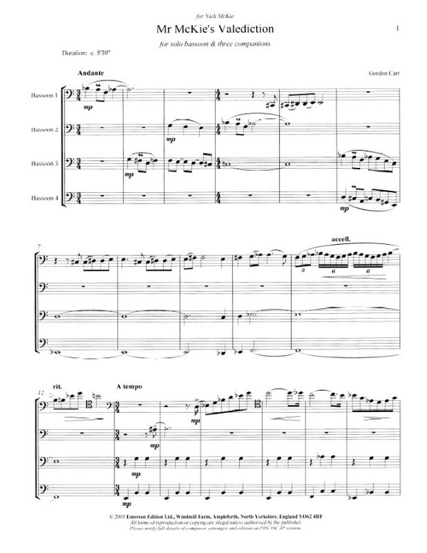 Produktinformationen "Mr. McKie's Valediction for 4 bassoons"