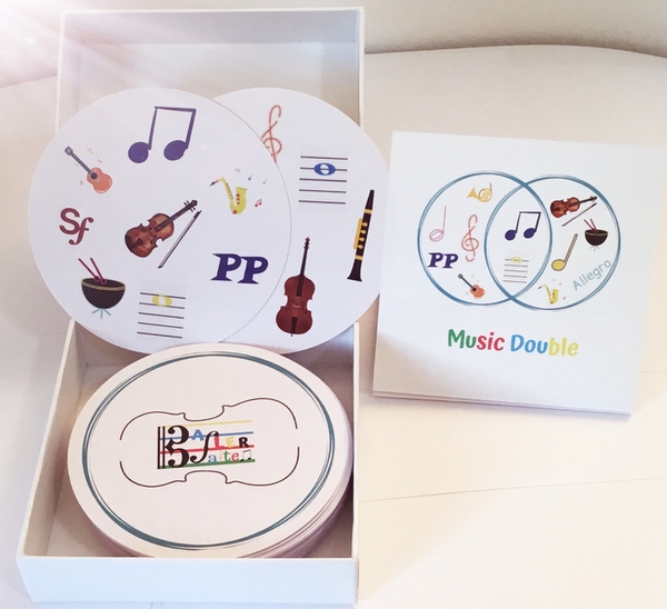 Mit Music Double kann man nicht nur die Beobachtung und Reaktion tranieren, sondern auch musikalische Begriffe, Noten und Instrumente lernen. Das Spiel enthält 54 runde Karten, die jeweils genau acht Symbole zeigen. Die Besonderheit ist, dass die Symbole auf den einzelnen Karten so gewählt sind, dass je zwei Karten stets genau in einem Symbol übereinstimmen. Die Spieldauer beträgt etwa 10 bis 15 Minuten.