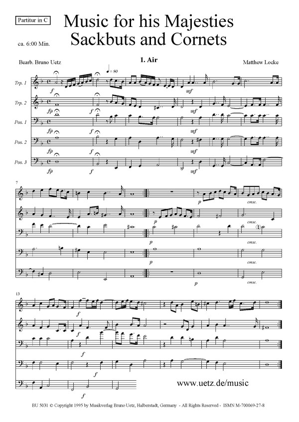 | Untertitel: | and Cornets für 2 Trompeten und 3 Posaunen, Partitur und Stimmen |