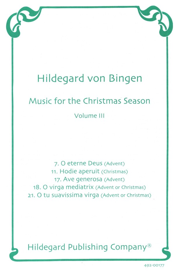 O eterne Deus (Advent) Hodie aperuit (Christmas) Ave generosa (Advent) O virga mediatrix (Advent or Christmas) O tu suavissima virga (Advent or Christmas)