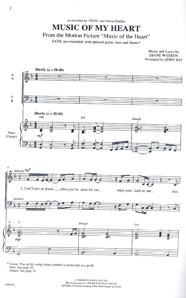 Pop Choral Series from the Miramax Motion Picture Music of the Heart Ray, Jerry, arr. Gloria Estefan and NSYNC, performers