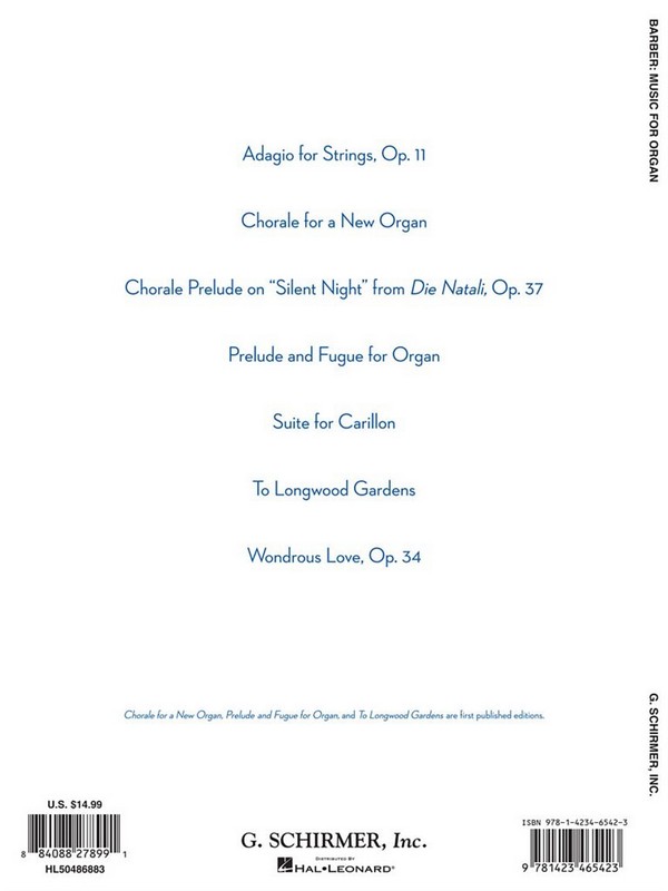 Adagio for Strings op.11 Chorale for a New Organ Choral Prelude on Silent Night from Die Natalie op.37 Prelude and Fugue Suite for Carillon To Longwood Gardens Wondrous Love op.34