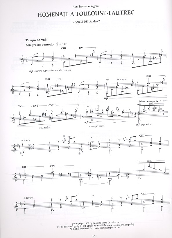 | Untertitel: | unica para guitarra del celebre compositor espanol |