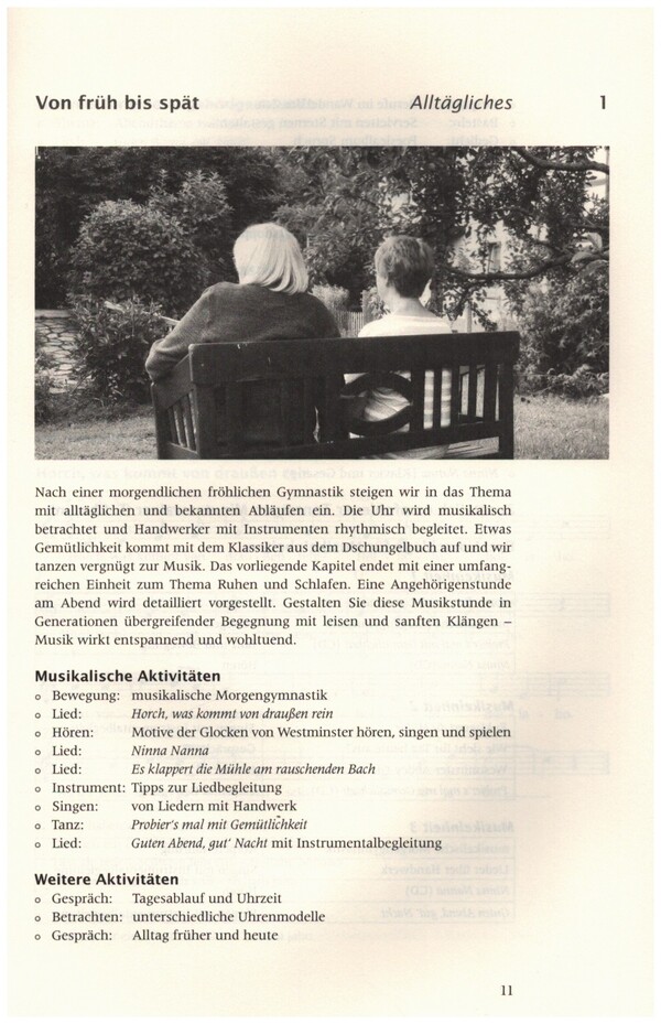 "Uneingeschränkt empfehlenswert!" lobte die Zeitschrift "Gottesdienst und Kirchenmusik" Angelika Jekics 2014 erschienene Anleitung zur musikalischen Seniorenarbeit "Musik tut gut". Nun folgt endlich ein neuer Band, diesmal unter Mitwirkung von Alexandra Geist, mit dem Versprechen: "Musik hält jung"! Beide Ausgaben können unabhängig voneinander eingesetzt werden. Wieder sind 10 Stundenbilder schlüsselfertig ausgearbeitet und in der Praxis erprobt. Jedes Thema enthält Tänze, Lieder, Spiele, Hörbeispiele, Kochrezepte, Arbeitsaufträge, Gedichte, anregende Abbildungen und vieles mehr. Die CD umfasst bekannte Melodien sowie neu komponierte und arrangierte Musik. Das für ein ganzes Jahr ausreichende Material lässt sich auf verschiedene Termine verteilen, flexibel einsetzen und leicht mit Ideen und Vorschlägen von Teilnehmern aus Seniorenmusikkreisen ergänzen. 1. Von früh bis spät Alltägliches 2. Essen Leib und Seele 3. Freunde und Feiern Wir haben Gäste 4. Mein Garten Welch ein Singen 5. Reisen Möge die Straße uns zusammenführen 6. Europa Deine Zauber binden wieder 7. Mein Zuhause Das Beste 8. Herbst und Früchte Fülle und Genuss 9. Wintertage Kalt und klar 10. Advent und Weihnachten Stiller Glanz