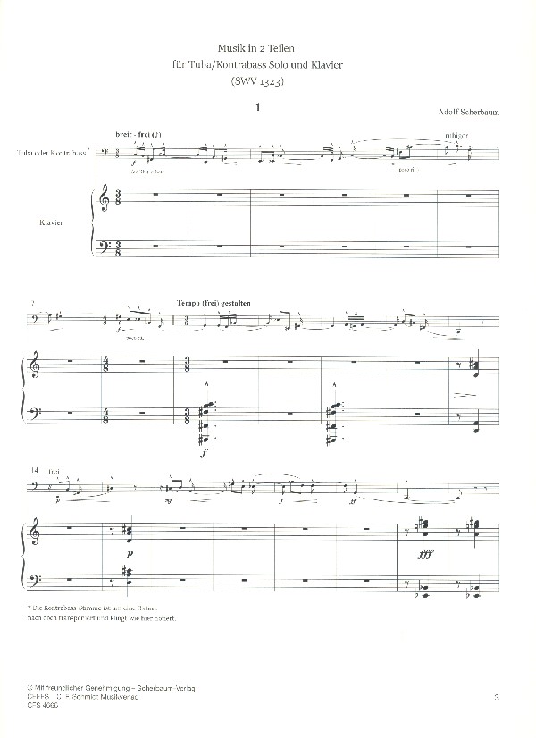 | Untertitel: | für Tuba/Kontrabass und Klavier Partitur und Stimmen |
