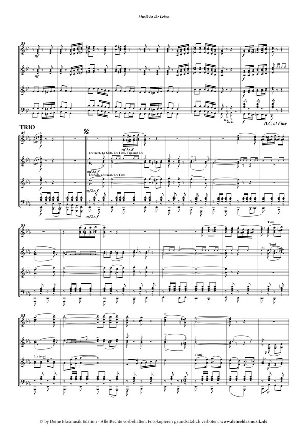 Polka Der 'Polkakönig' - so wird der Komponist und Arrangeur Michael Kuhn in Fachkreisen genannt. Und hört man sich sein neues Werk an, weiß man genau warum. Seiner Musikantenkollegin Iris Gallecker widmete er diese schwungvolle Polka und zeichnet einfühlsam ihr musikalisches Leben. Ab den ersten Takten schon reißt die Polka den Zuhörer voll mit. Die Melodie bleibt im Ohr, ein fetziges Basssolo und schöne Nebenmelodien in den Hörner, umspielt von eleganten Linien im Holz, enden in einem grandiosen Trio.