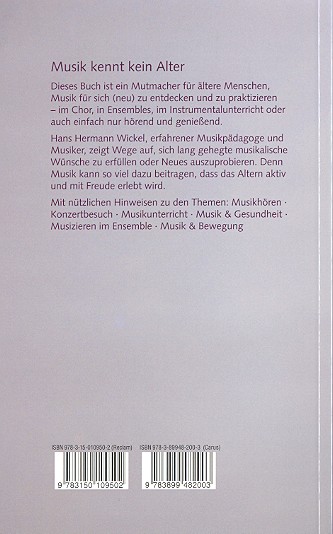 In Zusammenarbeit mit dem Verlag Reclam Dieses Buch ist ein Mutmacher für ältere Menschen, Musik für sich (neu) zu entdecken und zu praktizieren - im Chor, in Ensembles, im Instrumentalunterricht oder auch einfach nur hörend und genießend.
