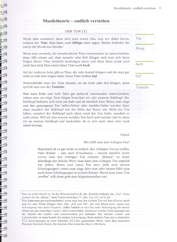 Dieses Buch soll vorhandene Lücken schließen. Sämtliche relevanten Begriffe der Musiktheorie einschließlich der Akkorde und Funktionen werden aufeinander aufbauend auch tatsächlich verständlich erklärt. Mit einer Aufgabensammlung und Lösungen. Oft werden musiktheoretische Begriffe alphabetisch oder zu Sachgruppen gebündelt erläutert. Dadurch entsteht beim Leser allerdings kein zusammenhängender, aufeinander aufbauender Kontext ,der jedoch für den Wissenserwerb ungeheuer wichtig ist.