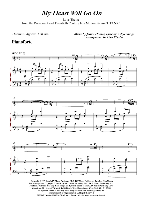 My Heart will go on: für Violine, Violoncello