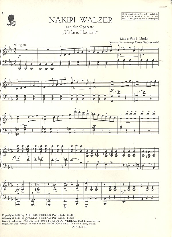 Nakiri-Walzer - aus der Operette 'Nakiris Hochzeit'