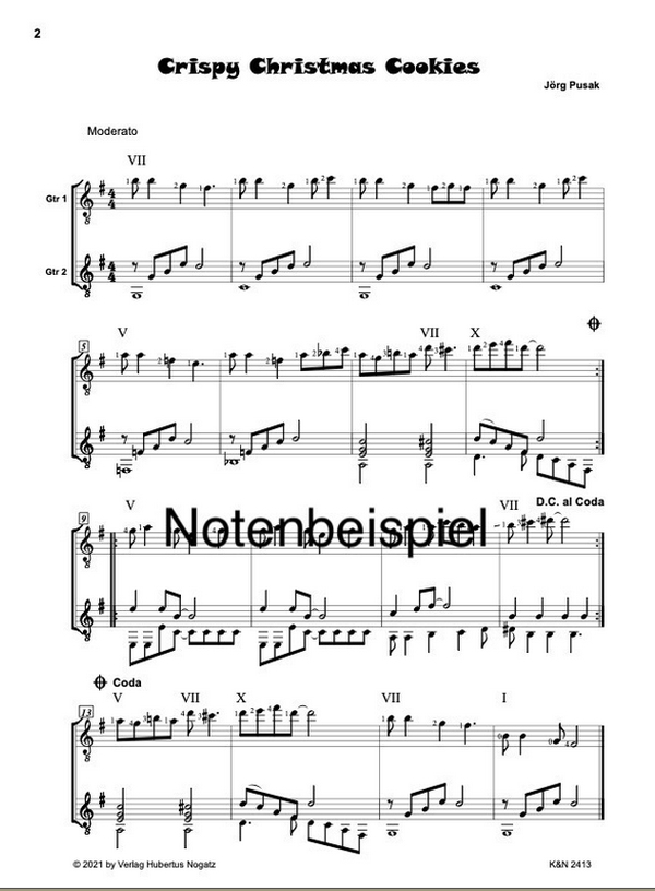 Lieder fur die kalte Jahreszeit Sechs Solostücke und elf Duette fur die Konzertgitarre, sind in den letzten Jahren in der Vorweihnachtszeit entstanden. Der Wunsch, im Unterricht auch selbst einmal ein Weihnachts- oder Winterlied zu schreiben, galt hier als Anlass. Entstanden ist eine Sammlung von heiteren, lustigen und frohlichen Liedern fur die kalte Jahreszeit. Ich danke Rainer Kinast, der mir freundlicherweise ein Winterlied fur dieses Heft zur Verfugung gestellt hat. Das einstimmige Spiel sowie erste Kenntnisse im zweistimmigen Spiel mit leeren und wenigen gegriffenen Bassnoten sind die technischen Spielvoraussetzungen fur die Stucke. Bei den Duetten ist die Stimme der zweiten Gitarre als Lehrerbegleitung bzw. fur bereits fortgeschrittene Schuler gedacht. Crispy Christmas Cookies Flockig, weißer Schnee Bald ist der erste Advent Unser Lebkuchenhaus Schli-Schla-Schlittenfahrt Das Haus vom Nikolaus Knecht Ruprecht Es ist Weihnachtszeit Heut' ist Silvester Die Weihnachtsfrau vom Weihnachtsmann Weihnachten bin ich zu Hause Keine Lust auf Weihnacht' Ich freu' mich auf die Winterzeit Herr Lehmann, der Schneemann The sad Christmas Tree Kaminfeuer X-Mas Blues