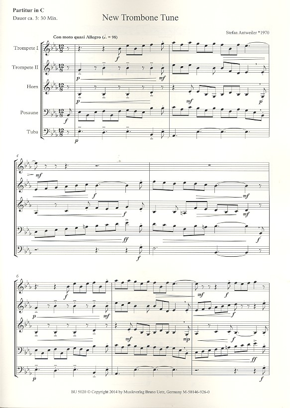 | Untertitel: | für 2 Trompeten, Horn in F, Posaune und Tuba Partitur und Stimmen |