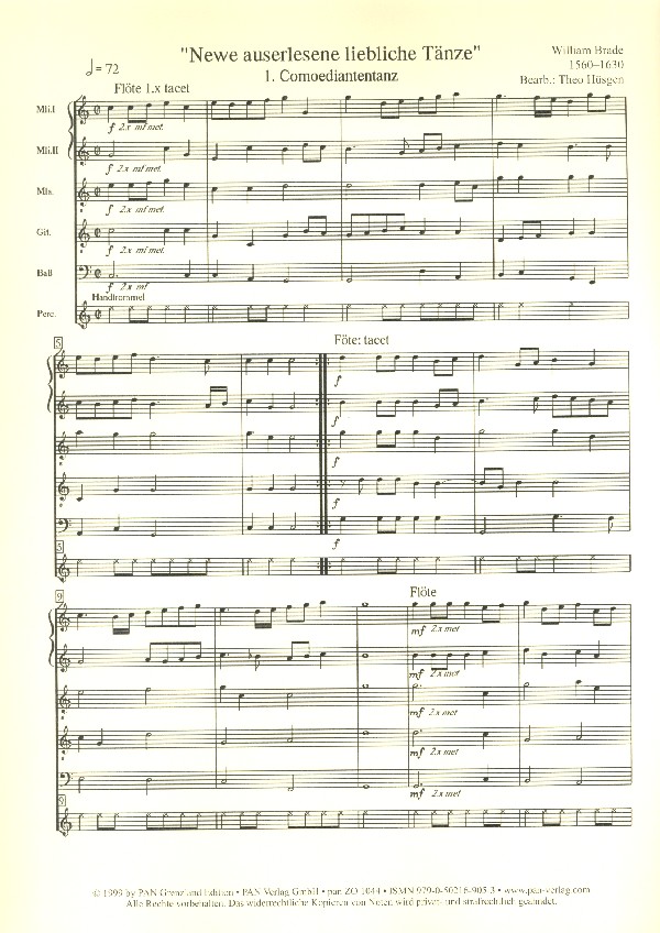 Grenzland Edition Hüsgen, Theo, arr. Comoediantentanz Der Pilligrienen Tantz Der Satyrn Tanz