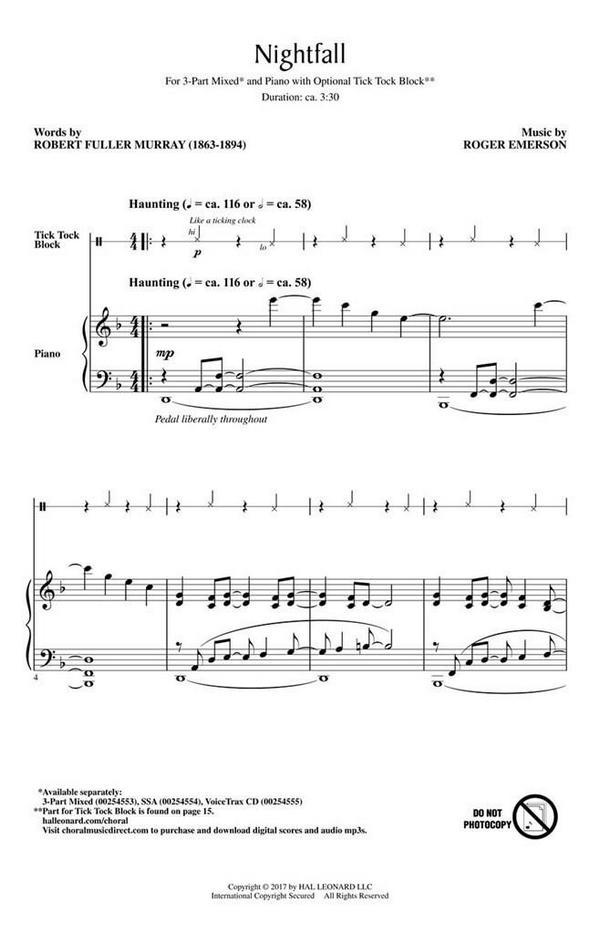 | Untertitel: | for 3-part choir and piano with opt. tick-tock-block choral score |
