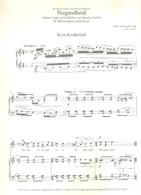 Kaléko, Mascha, Text Kein Kinderlied Einer Ich und Du Seiltänzerin ohne Netz Glück und Unglück Solo für Frauenstimme Uhrenlied