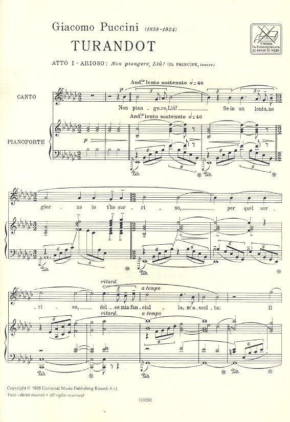 Non piangere Liu per tenore