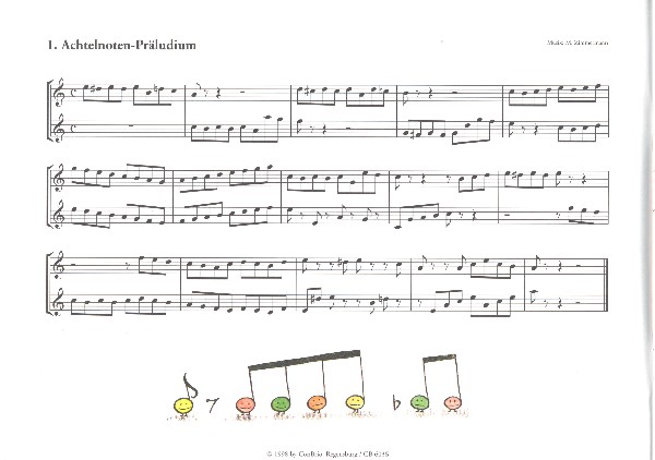 | Untertitel: | für 2 Sopranblockflöten (Ensemble) (Bassflöte und Percussion ad lib) Spielpartitur |