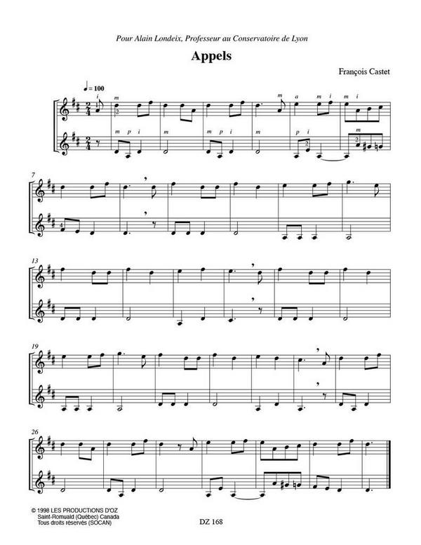 Appels Quatre variations Quatre accords Cinq phrases En se balancant Decidement Sur une danse ancienne Chanson melancolique Fete aus village Chanson hongroise Marionettes Le tour est joue! L'ami Pieter Duos sans titre... Tristement Valse Valse