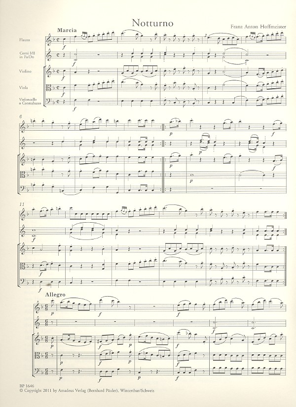 Produktinformationen "Notturno F-Dur für Flöte, 2 Hörner,"