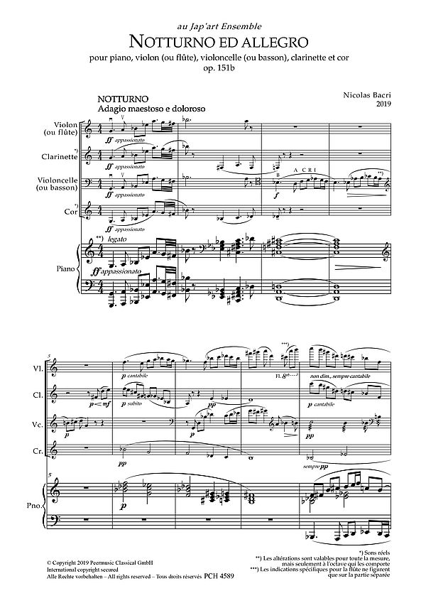 | Untertitel: | für Klavier, Violine (oder Flöte), Violoncello (oder Fagott), Klarinette und Horn Partitur und Stimmen |