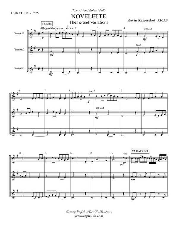 Difficulty: 3 Duration: 3:30 min, Novelette, as the title would suggest, is a small story with several distinctive chapters, As a result, this composition is a set of five variations on an original theme and each with their own character,