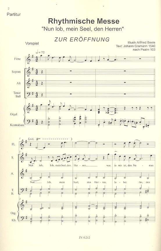 | Untertitel: | gem Chor, Gemeinde, Klavier, Flöte und Kontrabass Partitur und Instrumentalstimmen |