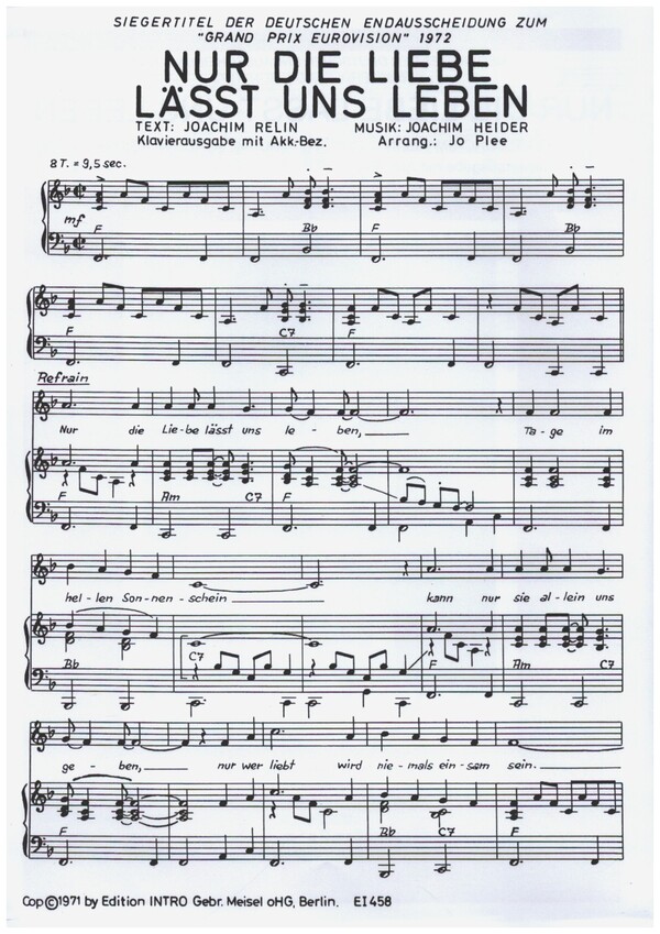 Siegertitel der deutschen Endausscheidung zum "Grand Prix Eurovision" 1972